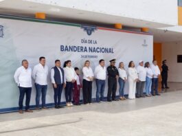 Homero Novelo encabeza la ceremonia por el Día de la Bandera,...