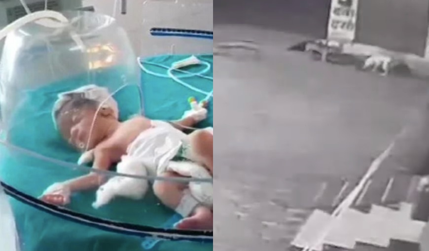 INDIA, viernes 26/07/19.- Cámaras de seguridad captaron el acto heroico de unos perros callejeros, que encontraron a una bebé prematura que fue arrojada por su propia madre a una alcantarilla, según reveló el equipo de vídeo.