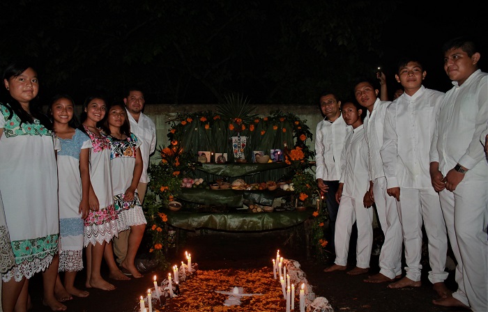 Entusiasmo, alegría y buena disposición, pero sobre todo orgullo y arraigo por esta celebración, fue lo que demostraron las y los estudiantes durante esta dinámica en cada uno de sus planteles, donde, como cada año, se instalaron caminos de cal y flores, velas, veladoras, cruces y fotografías de sus difuntos en mesas y casitas de palo y guano.