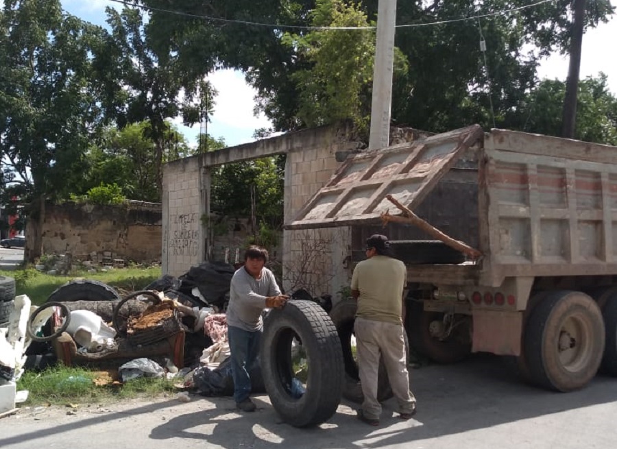 MÉRIDA, Yucatán, jueves 08/07/21.- El Ayuntamiento de Mérida ha tenido que redoblar esfuerzos para avanzar en la recolección de cacharros que siguen en la vía pública, a pesar de que la campaña de descacharrización que realizó el gobierno estatal en Mérida y sus comisarías ya concluyó.
