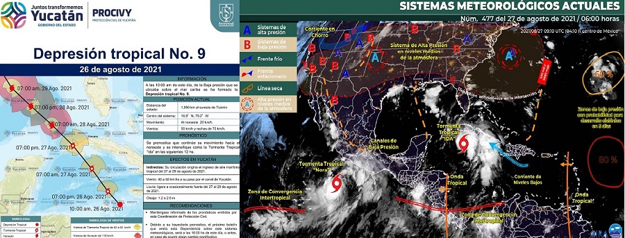 A su vez, Protección Civil estatal informó que ayer se formó la novena depresión tropical en aguas del Mar Caribe, que ya es tormenta tropical “Ida” y estaba ubicada a más de mil kilómetros de Tizimín, meteoro que ocasionaría lluvias de ligeras a ocasionalmente fuertes, del viernes 27 al domingo 29.