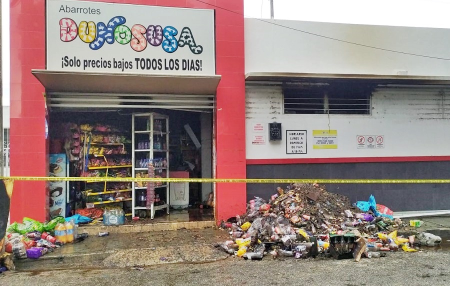 MÉRIDA, Yucatán, jueves 07/10/21.- Hoy en la mañana, minutos después de las 06:00 horas, una de las tiendas de abarrotes “Dunosusa”, ubicada las calles 21-A con 38 del fraccionamiento Residencial del Norte Chenkú se incendió a causa de un corto circuito.