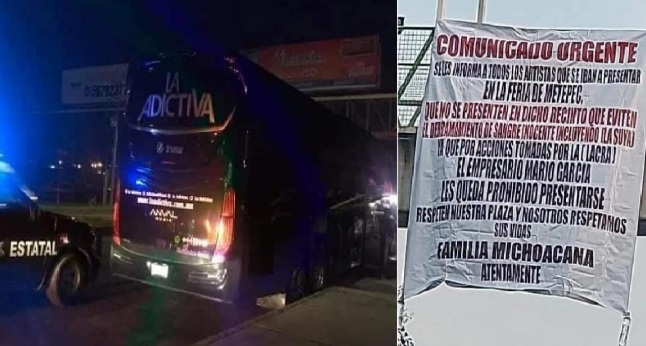“La Adictiva”, un grupo musical originario de Sinaloa, se presentó en la feria este viernes y luego del concierto, su autobús fue interceptado por un grupo armado en la carretera Toluca-Atlacomulco y fue faragueado a balazos con armas de alto poder.