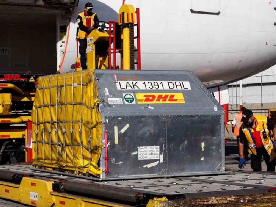 CIUDAD DE MÉXICO, martes 09/11/21.- Este martes en punto de las 08:41 de la mañana llegó en el vuelo 163 al Aeropuerto Internacional de la Ciudad de México un nuevo embarque con 596 mil 700 dosis de vacunas Pfizer contra la covid-19.