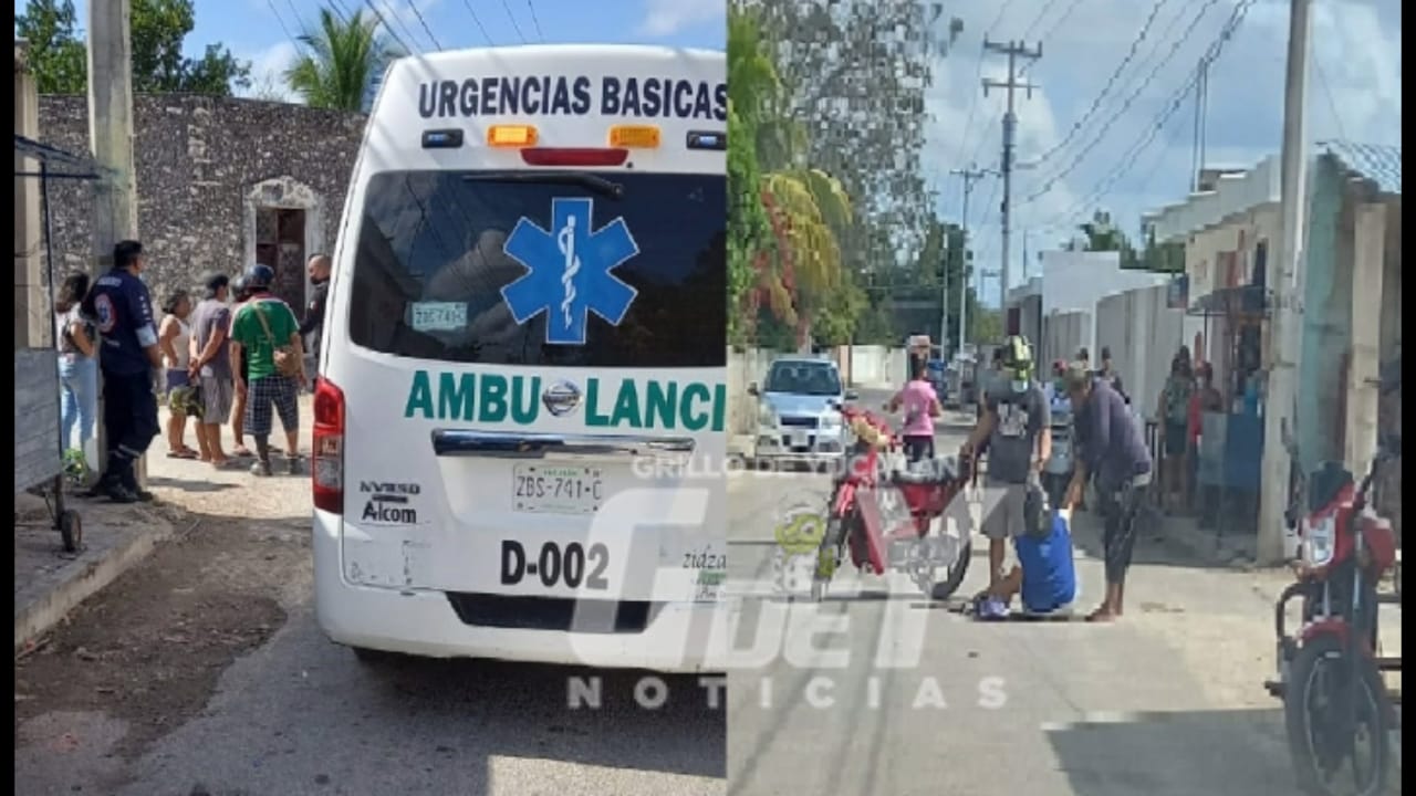 DZIDZANTÚN, Yucatán, jueves 27/01/2022.- Por no guardar su distancia, la tarde de ayer el conductor de una motocicleta Italika 150 c.c. chocó por alcance a una motociclista y la aventó al suelo, al intentar rebasarla en el cruce de la calle 23 con 12.