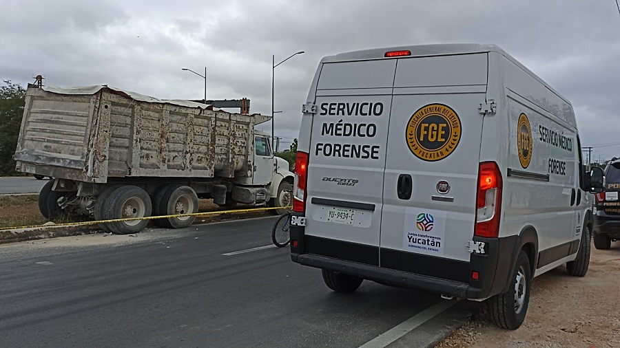 MÉRIDA, Yucatán, sábado 05/02/22.- El conductor de un volquete murió de un infarto fulminante, hoy poco antes de las 2:40 de la tarde, cuando circulaba sobre el Anillo Periférico, de modo que terminó sobre el camellón; hasta ahora la identidad del chófer se desconoce.