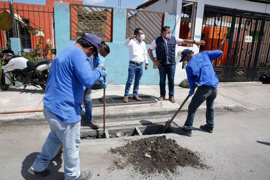 El Alcalde, Renán Barrera Concha, informó que la administración municipal mantiene una estrategia de vigilancia y mantenimiento de los mecanismos de captación de lluvia, con la finalidad de evitar la acumulación de agua en los cuatro puntos cardinales del Municipio.