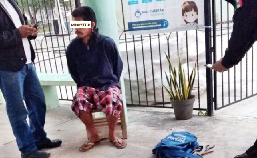 MÉRIDA, Yucatán, miércoles 16/02/22.- Ayer martes en la tarde un ladrón robó un reproductor de DVD y después, como marca defecó en la puerta de un salón, pero al salir de la escuela primaria “Luis Donaldo Colosio”, en la colonia Los Reyes, lo detuvieron por agentes de la SSP.