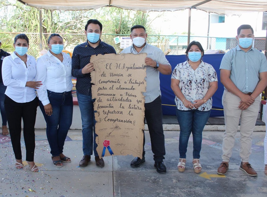 UMÁN, Yucatán, viernes 04/03/22.- A fin de promover la lectura en los niños, se llevó al cabo la primera “Sala de Lectura”, en el Jardín de Niños “Maa Tub’z Cen” del Fraccionamiento Paseos de Itzincab.