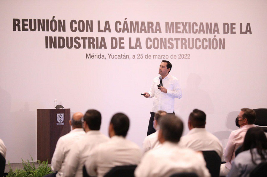 MÉRIDA, Yucatán, sábado 26/03/22.- Mauricio Vila Dosal expuso ante integrantes de la Cámara Mexicana de la Construcción (CMIC) de todo el país las ventajas y características de Yucatán, las cuales han colocado al estado como uno de los más competitivos y atractivos de todo el México y del mundo para atraer inversiones y, con ello, beneficiar a las familias yucatecas con más y mejores oportunidades de empleo.