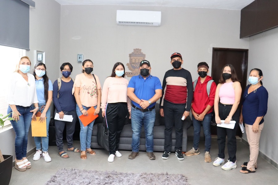 OXKUTZCAB, Yucatán, domingo 10/04/22.- El ayuntamiento que encabeza el alcalde Juan José Martín Fragoso, inició el “Programa de transporte para estudiantes universitarios”, con el que apoya a 27 jóvenes que cursan carreras profesionales en varias universidades.