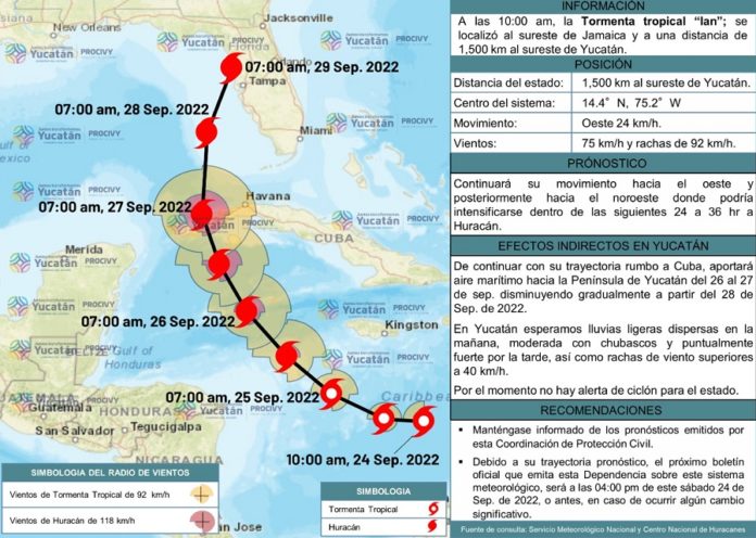 Debido a la cercanía de la tormenta tropical “Ian”, ubicada en el centro del Mar Caribe, el Sistema de Alerta Temprana para Ciclones Tropicales emitió Alerta Azul para el este y noreste de Yucatán.