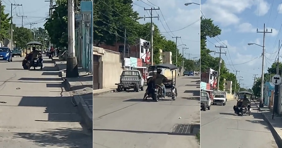 UMÁN, Yucatán, martes 18/07/2023.- Un sujeto arrastró a su esposa en un mototaxi en Umán. Usuarios de ese municipio de Yucatán compartieron el video de este suceso que causó indignación porque, aseguran, la víctima quedó bañada en sangre.