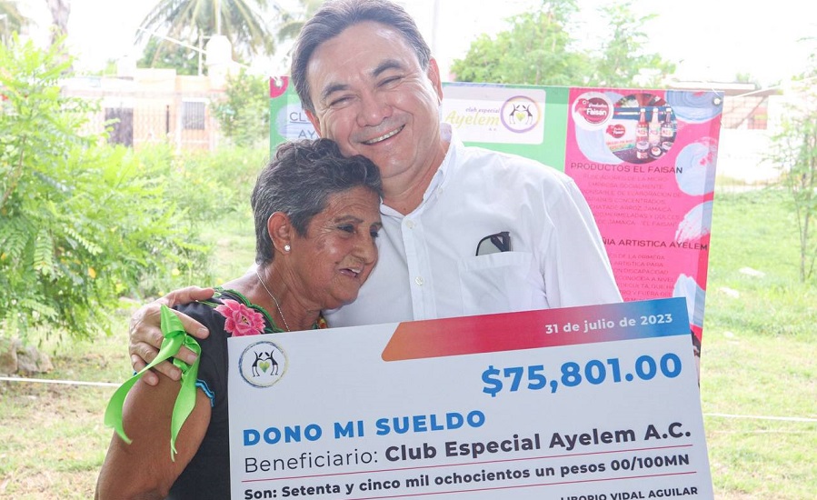 Vidal Aguilar compartió que esta acción es posible llevarla a cabo debido a que cuenta con un negocio familiar, que le permite donar íntegramente el sueldo que recibe mensualmente, en esta ocasión como secretario de Educación, por la cantidad de $75,801.