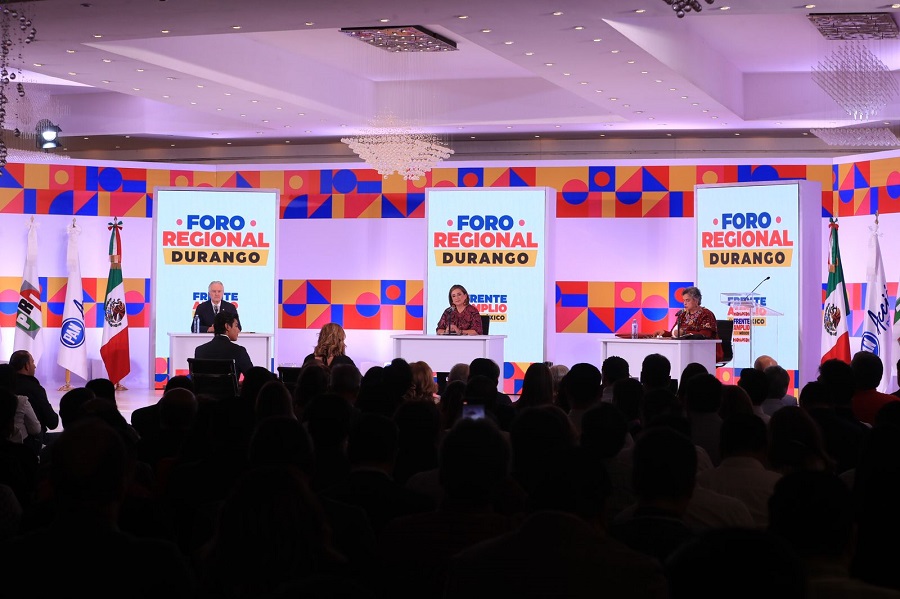 DURANGO, viernes 18/08/2023.- Los tres finalistas en el proceso de selección de la o el responsable de la construcción del Frente Amplio por México: Beatriz Paredes Rangel, Xóchitl Gálvez Ruiz y Santiago Creel Miranda, participaron en el primer foro regional de Diálogos Ciudadanos “Vivir en México y ejercer derechos”, que se realizó en la capital de Durango.