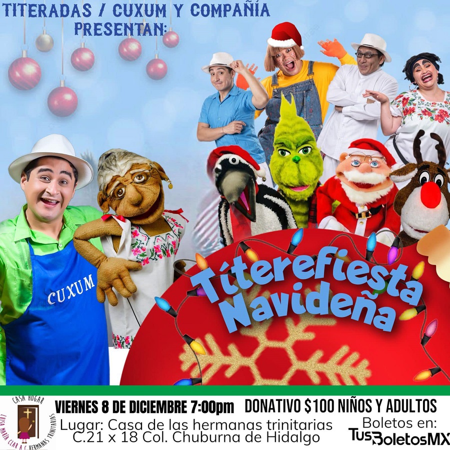MÉRIDA, Yucatán, miércoles 06/12/2023.- El viernes 8 de diciembre, a las 7:00 pm, el Grupo Titeradas y la Compañía de Teatro Regional de Erik Ávila “Cuxum” presentarán en la Casa Hogar de las Madres Trinitarias un espectáculo navideño, y todo lo recaudado será en beneficio de las niñas que cobija la institución.