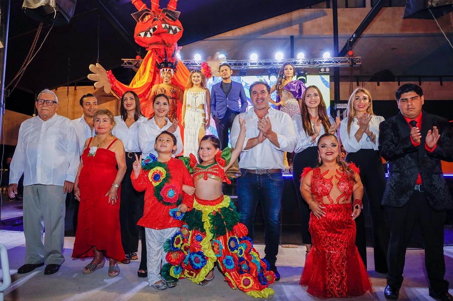 PROGRESO, Yucatán, miércoles 06/12/2023.- El alcalde Julián Zacarías Curi, acompañado de integrantes del Comité del Carnaval de Progreso, presidido por Gabriela Alejandra Castilla Blanco, presentó anoche a quienes llevarán la alegría y el ritmo de las carnestolendas del jueves 1 al sábado al 17 de febrero de 2024.