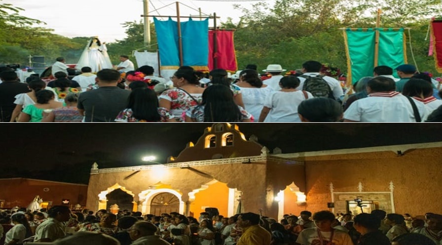 VALLADOLID, Yucatán, lunes 08/01/2024.- Con una caminata “U bej Koolebi” empezaron los festejos religiosos en honor a la Virgen de la Candelaria, evento al que cientos de feligreses y autoridades religiosas asistieron y encabezaron la peregrinación “procesión”.