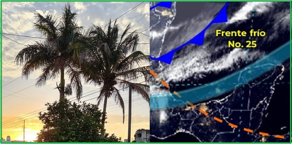 “NORTE MODERADO”: Hoy martes en la tarde, el frente frío 25 tocará tierra yucateca en horas de la tarde y ocasionaría un “norte” moderado en la costa, con vientos del noroeste de 40 a 50 km/h, con ligero descenso de las temperaturas al anochecer y serán frescas al amanecer del día de mañana miércoles.