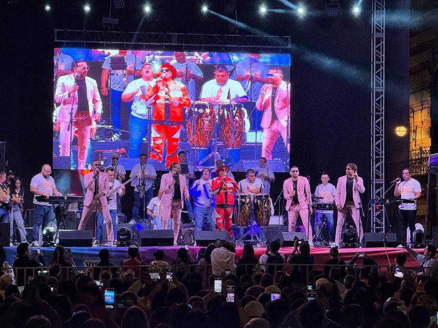 Al término de la ceremonia de Quema del Mal Humor, el ambiente de fiesta continuó con la presentación del grupo Merenglass que puso a bailar a las y los casi 10 mil asistentes con sus éxitos como “La mujer del pelotero” y “Culikitaka”.