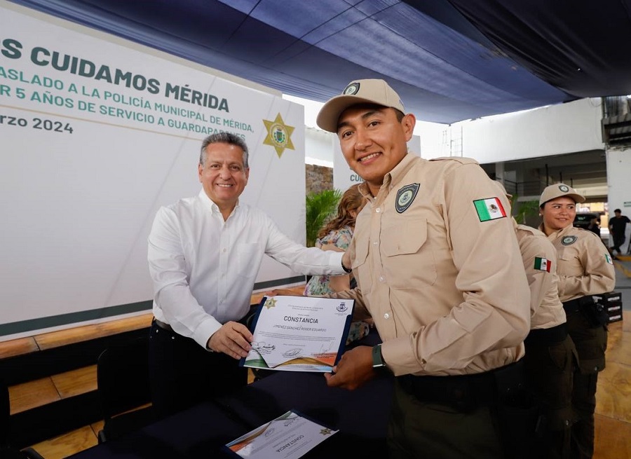 Al presidir la entrega de nuevos vehículos de traslado a la Policía Municipal y los uniformes y certificados por 5 años de servicio a los Guardaparques, Ruz Castro indicó que este acto cobra un interés especial al tratarse de los elementos que salvaguardan la salud y paz social de la ciudadanía.”Este evento nos une en torno a continuar trabajando en equipo, en el cuidado de la salud y seguridad pública ganada por todas las personas que habitan en Yucatán, reafirmando nuestro compromiso con la solidaridad de la gente y las familias”, manifestó.