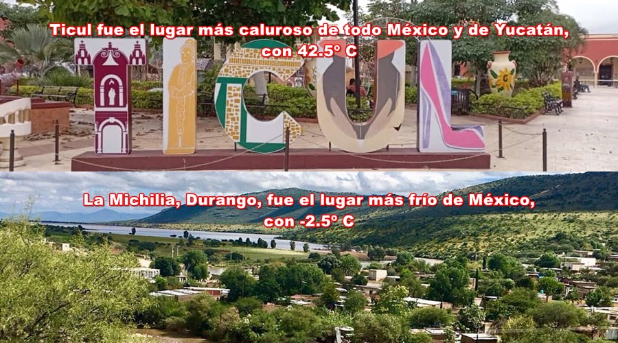 En el otro extremo del clima, La Michilia, Durango, fue el lugar más frío del suelo mexicano, con -2.5º C, en tanto que en “Cabezolandia” (Yucatán) lo fue la capital yucateca, con 18º C.
