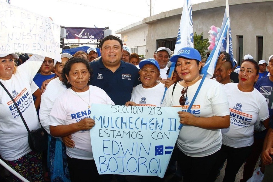 Acompañado de su esposa Raquel Balam Rocha de Bojórquez y del candidato a diputado local por el Distrito 10, Diego Cardós Rodríguez, el candidato panista expresó a los vecinos de esas tres colonias su plan de trabajo para los siguientes tres años en materia de seguridad, desarrollo social, economía, deportes, cultura, obras públicas, entre otros temas.
