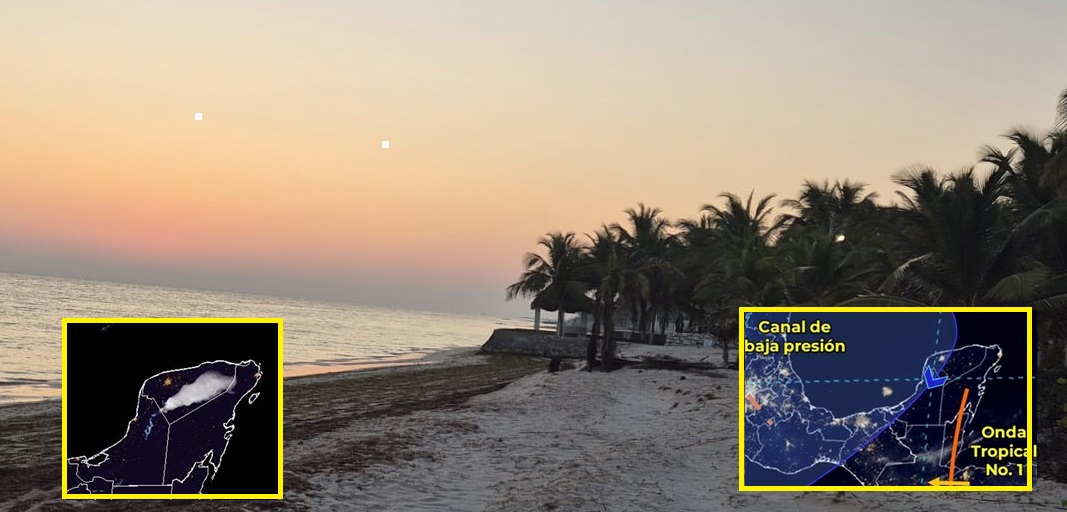 CAMPECHE Y QUINTANA ROO: Se espera cielo parcialmente nublado y habría chubascos acompañados de actividad eléctrica al norte de Campeche, así como en el norte de Quintana Roo, debido a un canal de bajas presiones en interacción con el paso de la onda tropical 1 al sur de la región, Además, el ambiente será de muy caluroso a extremadamente caluroso en el día y cálido al amanecer, con viento del este-sureste, cambiando por la tarde al noreste dejando rachas de 40 km/h hacia la costa.