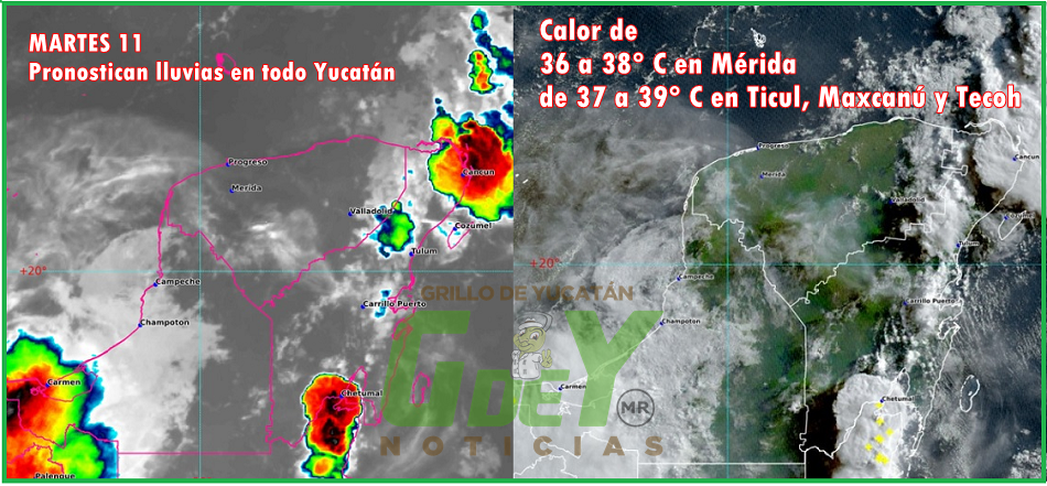 MÉRIDA, Yucatán, martes 11/06/24.- Sigue sin llover en Mérida, pero de nuevo se pronostican lluvias en TODO el estado, con calor de 37 a 39º C en el Sur y Suroeste de Yucatán, (de 36 a 38º C en Mérida), y bochorno de hasta 44º C.