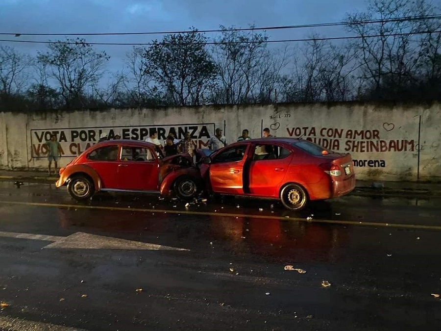 Los hechos se dieron alrededor de las 20:30 horas de ayer lunes, cuando el conductor de un Volkswagen transitaba de poniente a oriente sobre la calle 127. Al llegar al cruce entre las calles 82 y 80ª, el conductor del “Volcho” presuntamente intentó rebasar otro vehículo, en su maniobra terminó invadiendo el carril contrario, por lo que terminó estrellandose de frente contra un Attitude.