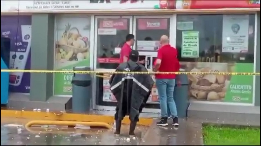 MÉRIDA, Yucatán, domingo 23/06/2024.- Las fuertes lluvias que caen desde hace días en la ciudad causan estragos en calles y en inmuebles, como sucedió en el Oxxo La Perla del fraccionamiento Los Héroes, donde cerca de las 15:00 horas se desplomó el techo.