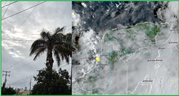 CAMPECHE Y QUINTANA ROO: Se espera cielo nublado durante el día y en la tarde ambiente cálido, con lluvias y descargas eléctricas en ambos estados. El viento soplará de dirección variable, de 10 a 25 km/h y rachas de 30 a 40 km/h.