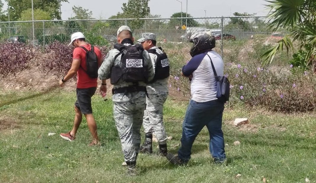 La Guardia Nacional intervino para solucionar el problema. El motociclista alegó que necesitaba pasar.
