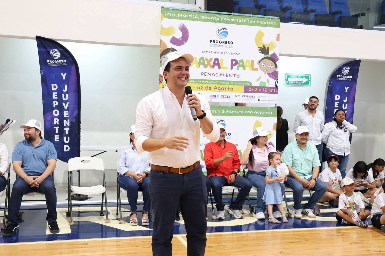 PROGRESO, Yucatán, domingo 03/08/2025.- Más de 220 niños y jóvenes participaron durante dos semanas en diversas actividades recreativas y deportivas, así como en dinámicas de convivencia, como parte del campamento “Báaxal Paal Renacimiento 2025”; programa estatal, impulsado por el Ayuntamiento de Progreso, y que tuvo una destacada respuesta en el municipio, como lo subrayó el alcalde Erik Rihani González durante la ceremonia de clausura.