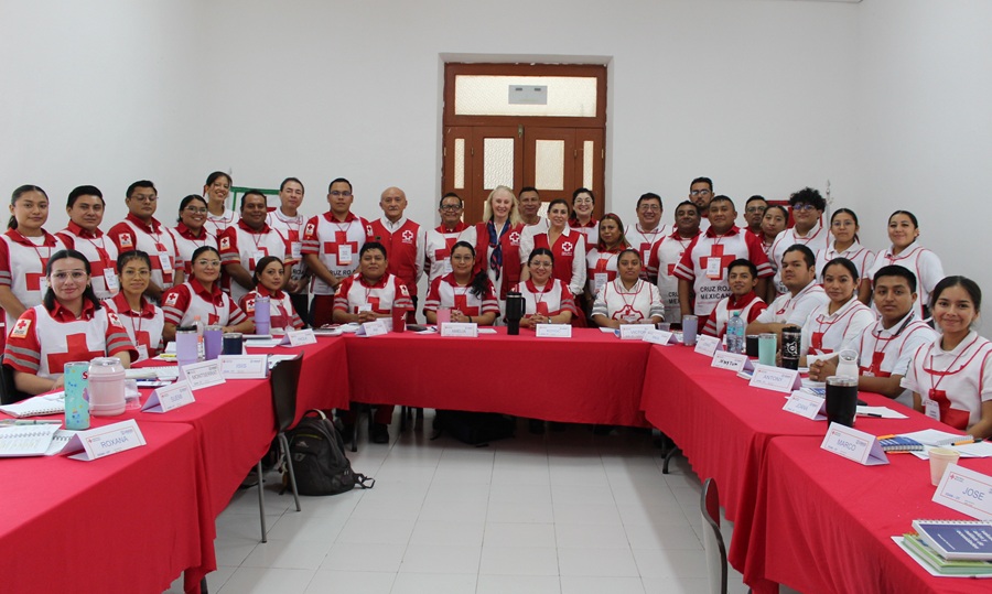 MÉRIDA, Yucatán, jueves 28/08/2025.- Un grupo de 32 voluntarios de Cruz Roja Mexicana Delegación Yucatán se capacitó como Evaluadores de Daños y Análisis de Necesidades tras un curso de tres días en el que el Responsable Nacional de Preparación y Atención a Desastres de la institución Javier Lara Moreno, explicó los procedimientos para la aplicación de este estudio.