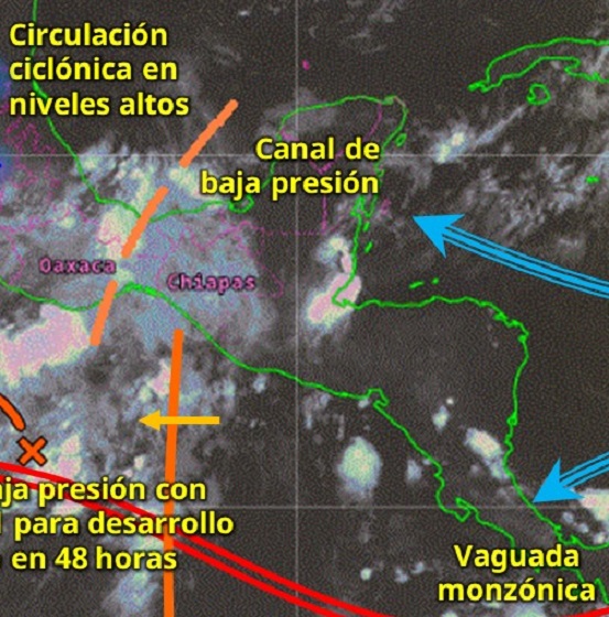 El paso de la onda tropical 29, al sur de la península y un canal de bajas presiones provocarían lluvias en el norte, centro y sur de Campeche, así como chubascos en el estado de Quintana Roo.