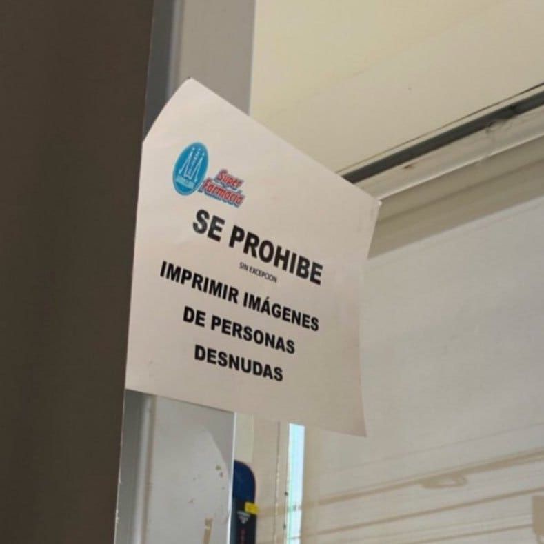 MÉRIDA, Yucatán, jueves 11/09/2025.- Al parecer porque ya empezaban a abusar con los “nudes” de su xun o su kech, en una sucursal de Farmacias Guadalajara prohibieron la impresión de fotos de personas sin ropa, incluso colocaron un aviso bastante visible para que los clientes estén bien enterados.