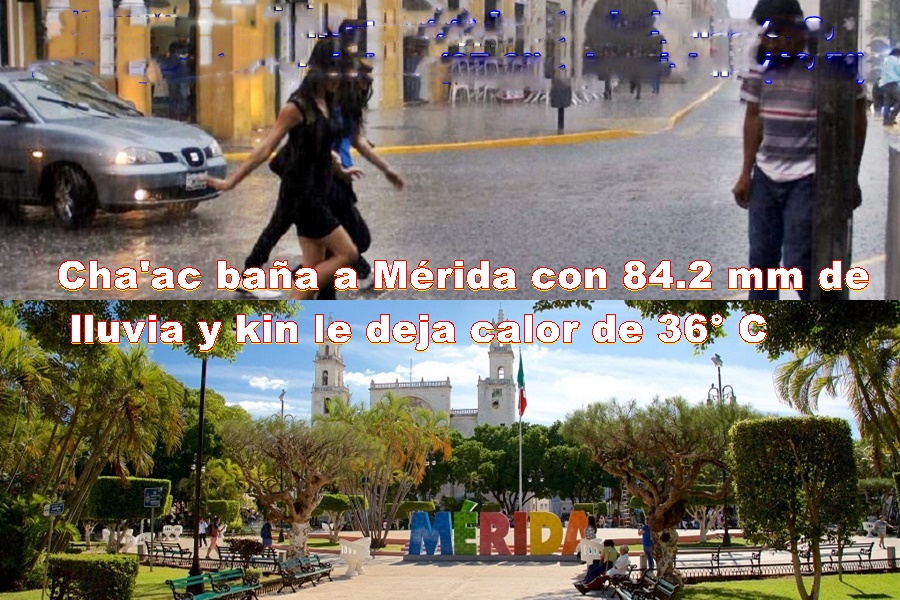 MÉRIDA: Mínima, 19º C en el Oriente; Máxima, 36º C, Poniente; lluvia, 40.2 mm, Norte, con acumulado de 84.5 mm en toda la ciudad