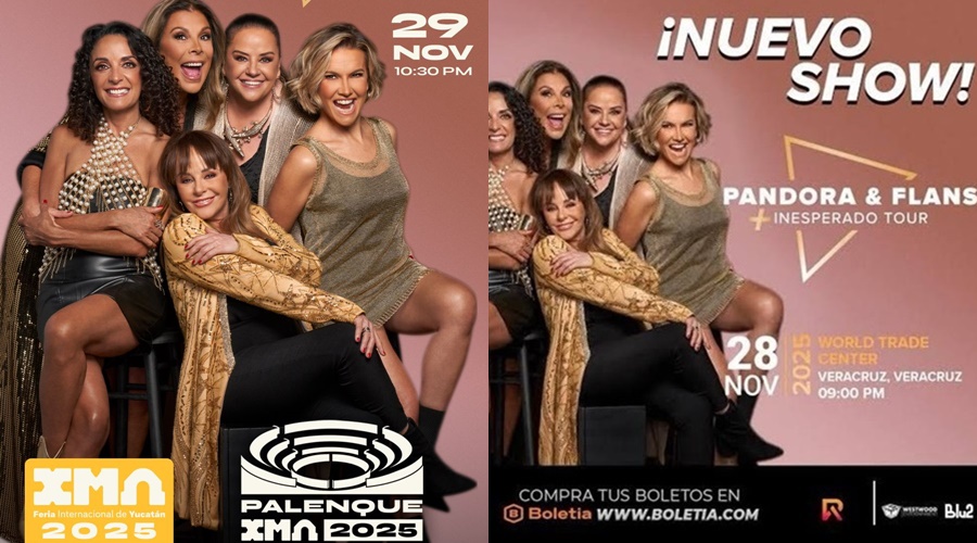 MÉRIDA, Yucatán, lunes 22/09/25.- Ni las Flans ni las Pandora tienen la cualidad de la bilocación o la teletransportación, pero sí actuarán en Mérida, aunque no será el 28 de noviembre, porque ese día estarán en Veracruz, sino al día siguiente, es decir, ofrecerán su concierto en el palenque de la Feria de Xmatkuil el 29 de noviembre.