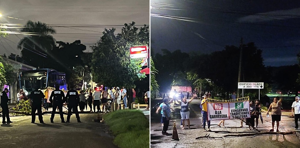 MÉRIDA, Yucatán, martes 23/09/2025.- Vecinos de la subcomisaría de Sodzil Norte, al norte de Mérida, realizaron anoche un bloqueo de vías de comunicación en protesta por la construcción de una calle en la zona.