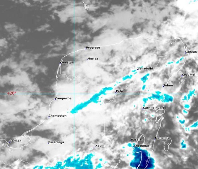 Se pronostica cielo de medio nublado a nublado durante el día, ambiente cálido en la mañana y de cálido a caluroso en la tarde, con lluvias en ambos estados, de diversa intensidad y acompañadas de descargas eléctricas. El viento soplará del Este, de 10 a 20 km/h, con rachas de 30 a 50 km/h en zonas de Campeche.