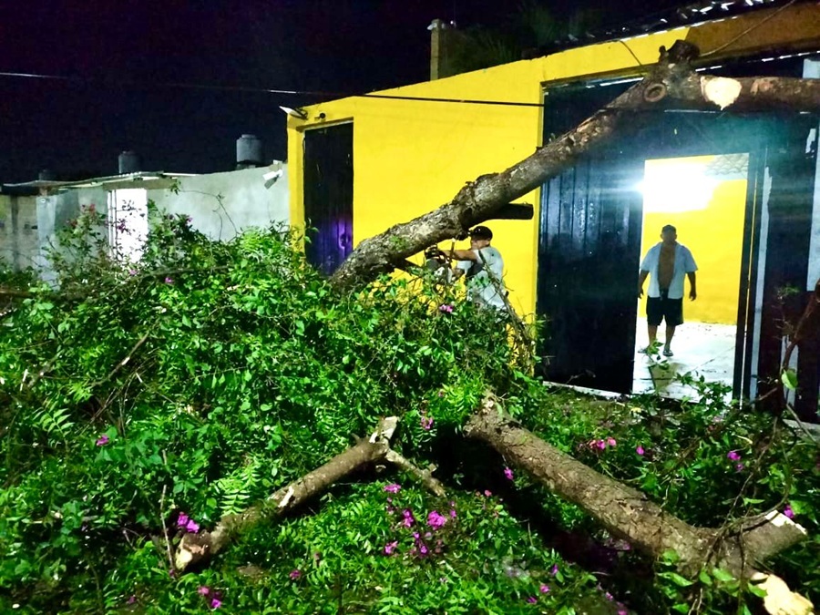 KANASÍN, Yucatán, sábado 27/09/2025.- Brigadas de Protección Civil de Kanasín atendieron la tarde noche de ayer viernes diversos reportes de árboles caídos en varias partes del municipio, esto a causa de las fuertes lluvias.