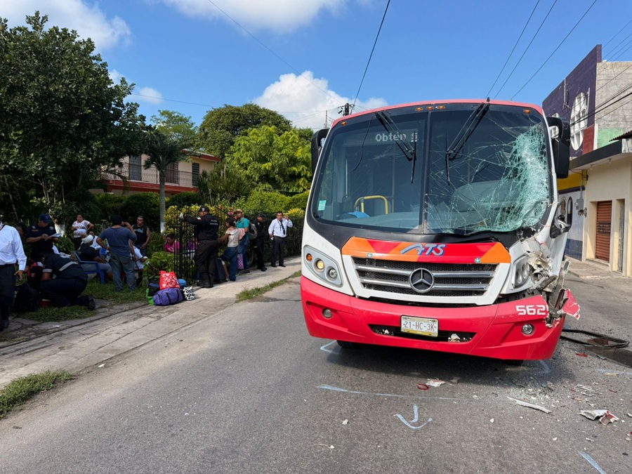 La colisión ocurrió hoy por la mañana en la calle 29 por 20 y 20-A, cuando el camión de ATS chocó de lleno contra un autobús que, según testigos, provenía de Campeche y estaba detenido en el lugar. La magnitud del choque provocó que decenas de pasajeros tuvieran lesiones.