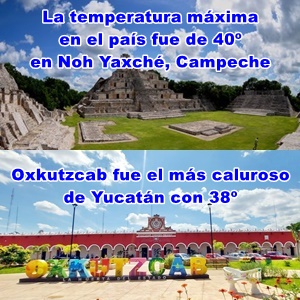 MÁXIMAS: Yucatán, 38º C, en Oxkutzcab; México, 40º C, Noh Yaxché, Campeche