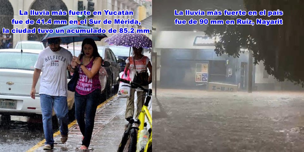 LLUVIAS: Yucatán, 41.4 mm, Mérida Sur; México, 90 mm, Ruiz, Nayarit