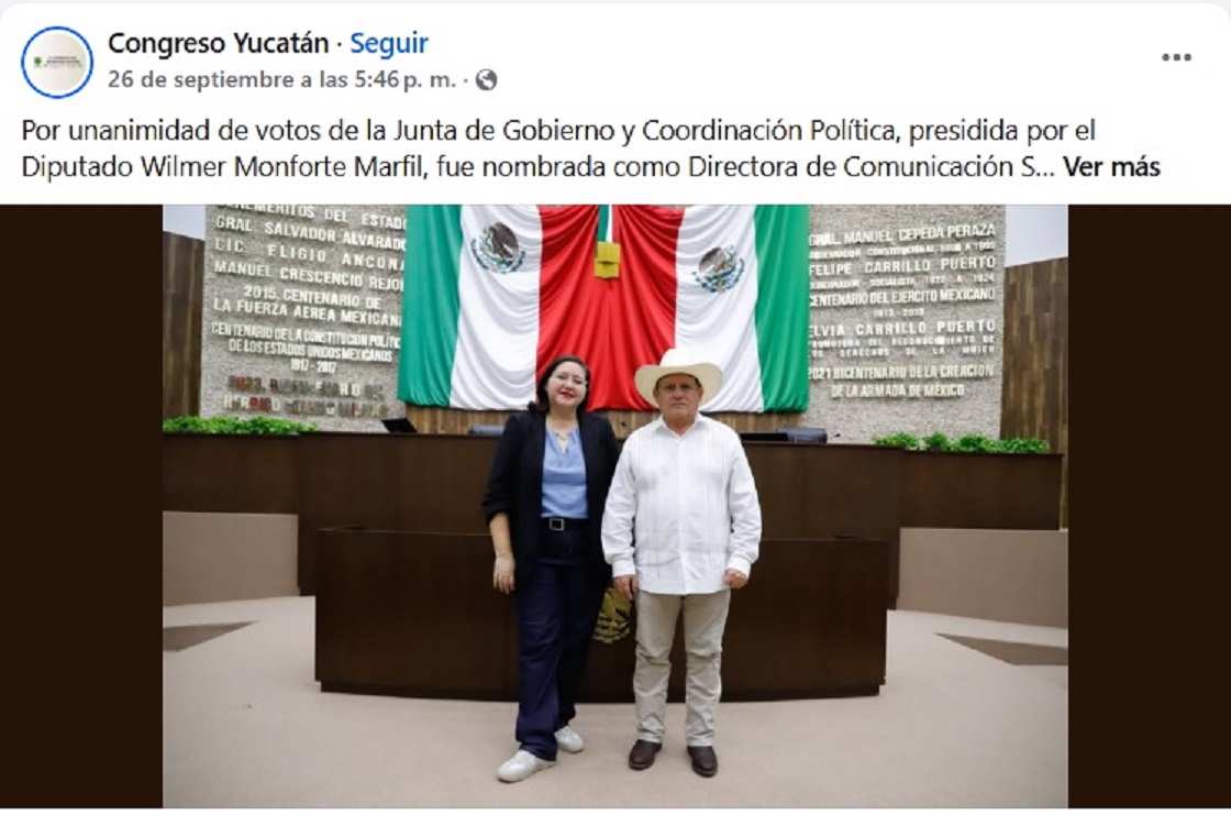 Por unanimidad de votos de la Junta de Gobierno y Coordinación Política, presidida por el diputado Wilmer Monforte Marfil, la nombafron fue nombrada como Directora de Comunicación Social del #CongresoYucatán la Lic. Dulce Viviana Sánchez Paz.