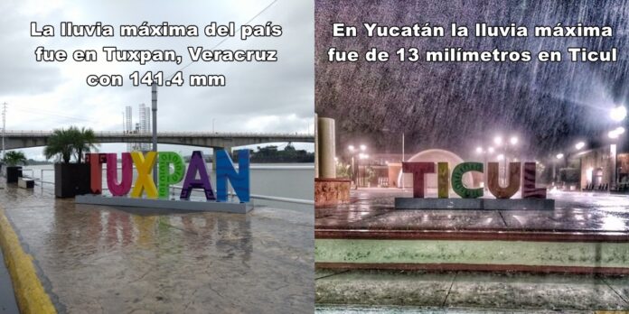 La lluvia máxima del país cayó en abundancia en Tuxpan, donde llovieron 141.4 mm de agua; la temperatura máxima del país fue de 38.6º C en Ejido Nuevo León, y la de Yucatán, de 36º, en Mérida.