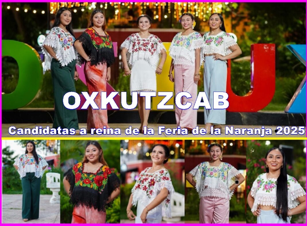 OXKUTZCAB, Yucatán, sábado 11/10/25.- El Comité Organizador de la Feria de la Naranja 2025, encabezado por el alcalde Juan José Martín Fragoso, presentó al público a las cinco aspirantes al título de Reina de esta festividad, una de las más importantes del Sur de Yucatán.