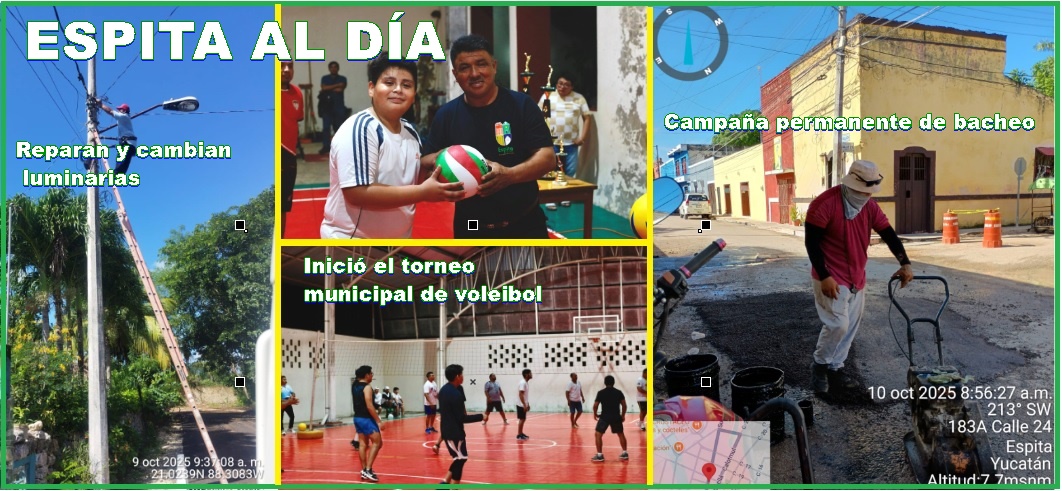 ESPITA, Yucatán, sábado 11/10/25.- La Comuna que encabeza el alcalde Mario Sánchez Esquivel sigue con la campaña permanente de bacheo, a fin de tener calles más seguras para ciclistas, motociclistas y automovilistas.
