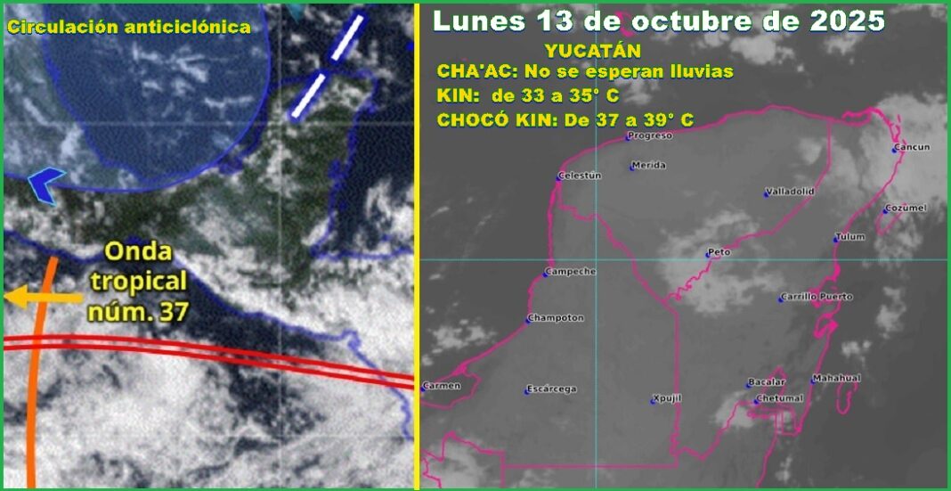 MÉRIDA, Yucatán, lunes 13/10//25.- Iniciamos la semana con pronóstico de un poquito menos de calor, que será de 35º C, y menos bochorno, pues será de 39º, contra los 45º que hubo hasta el viernes.